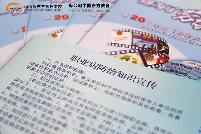 為認(rèn)真貫徹黨中央、國(guó)務(wù)院關(guān)于職業(yè)病防治工作的決策部署,深入宣傳《職業(yè)病防治法》,普及職業(yè)病防治知識(shí),提高教師的健康意識(shí)和自我保健能力,山西新東方烹飪學(xué)校開展了“職業(yè)病防治法宣傳周”活動(dòng)。