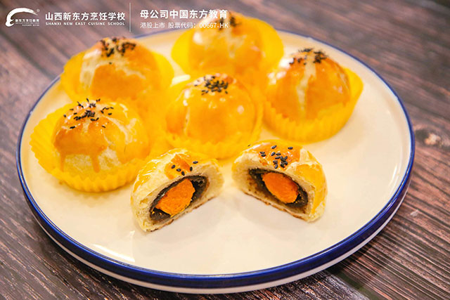 7、包好的蛋黃酥胚子,表面刷一層蛋黃液,撒上黑芝麻,入烤箱(180°,上下火)烤制30分鐘即可!