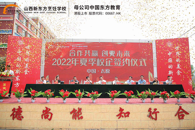 為進(jìn)一步深化校企合作、產(chǎn)教融合,主動(dòng)適應(yīng)餐飲行業(yè)發(fā)展的需要,使我校的專業(yè)教學(xué)更加貼近企業(yè)實(shí)際,進(jìn)一步增強(qiáng)學(xué)校的教學(xué)、實(shí)習(xí)與社會(huì)服務(wù)能力,為學(xué)生實(shí)習(xí)、實(shí)訓(xùn)、就業(yè)提供更多空間,山西新東方烹飪學(xué)校持續(xù)開設(shè)“校企合作”定向班。6月27日,山西新東方2022年夏季校企合作簽約儀式圓滿舉行,我校與多家優(yōu)質(zhì)企業(yè)再度聯(lián)手,達(dá)成合作。據(jù)悉,經(jīng)過校企雙方領(lǐng)導(dǎo)在不同層面進(jìn)行密集的接洽與溝通,此次簽約,雙方將本著“資源共享、優(yōu)勢(shì)互補(bǔ)、互利互惠、共同發(fā)展”的原則,主動(dòng)適應(yīng)餐飲產(chǎn)業(yè)發(fā)展的需要,實(shí)現(xiàn)產(chǎn)業(yè)鏈與教育鏈之間的優(yōu)勢(shì)互補(bǔ),在包括西餐、西點(diǎn)等方面開展合作共建。